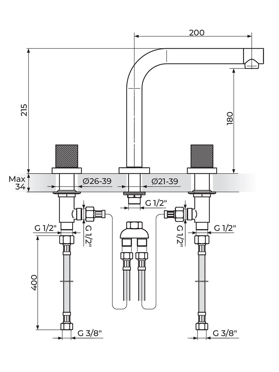 Baterija podgradna za lavabo visoka S2 Rosan 230309