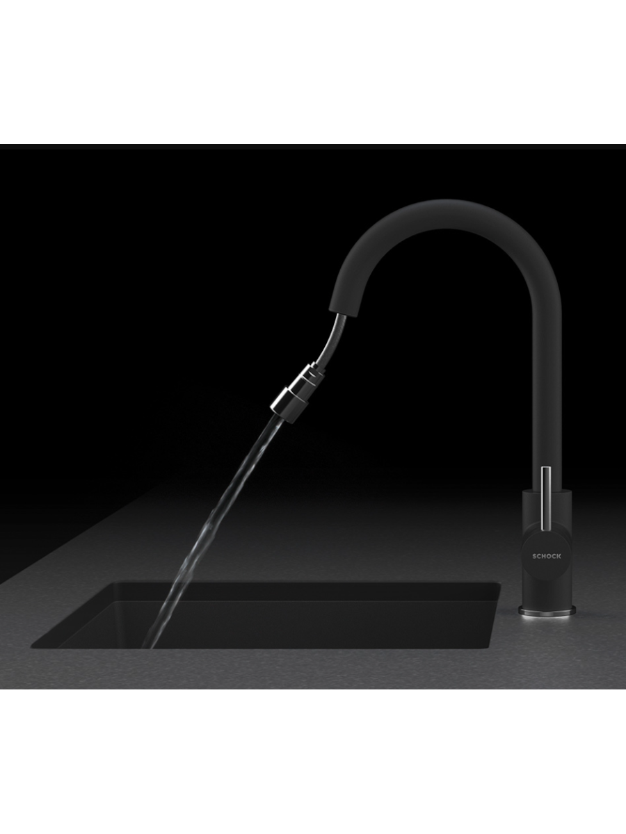 Baterija za sudoperu sa izvlačnim tušem Schock Plutos crna granitna dostupna je u više boja: Crna, Siva, Bela, Sabbi (pesak), Šampanj. One se savršeno uklapaju u različite stilove kuhinja. Izrađena je od granitnog materijala koji doprinosi dug vek trajanja i lako održavanje. Zahvaljujući svom jednostavnom izgledu, idealno se uklapa u kuhinje različitih stilova. Sadrži izvlačni tušu koj olakšava pranje sudova u sudoperi i van nje.