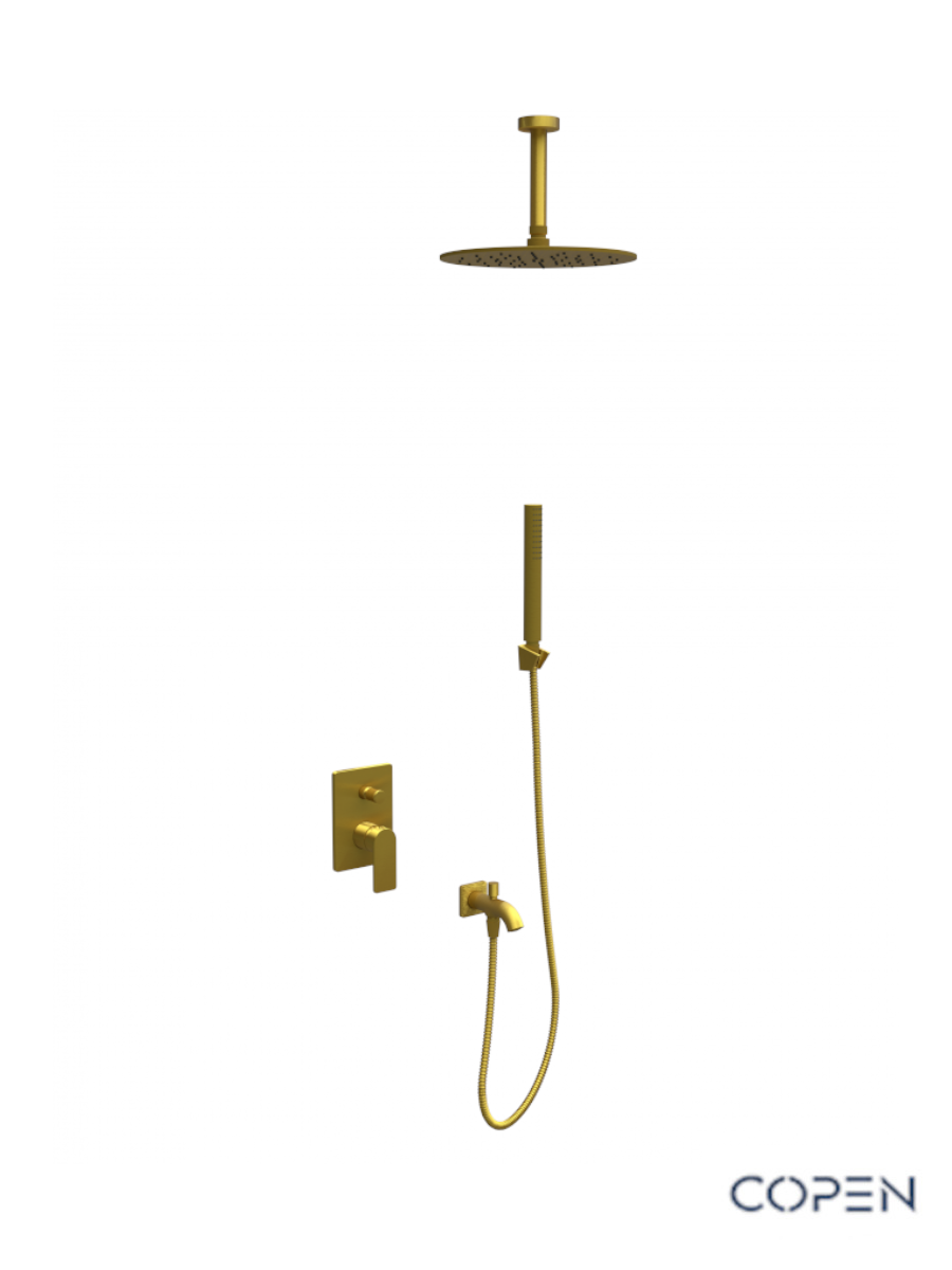 Ugradna baterija sa izlivom, plafonskim i ručnim tušem Copen Nook zlatna C-01-120BTG