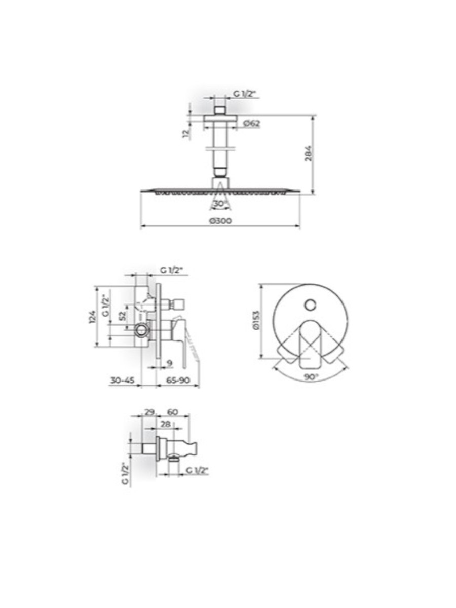 Ugradna baterija sa plafonskim i ručnim tušem S2 Black Rosan 231603B