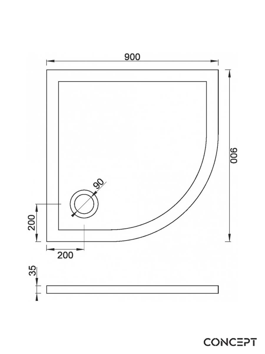 Tuš kadica polukružna 90x90cm sa-oblogom Concept: