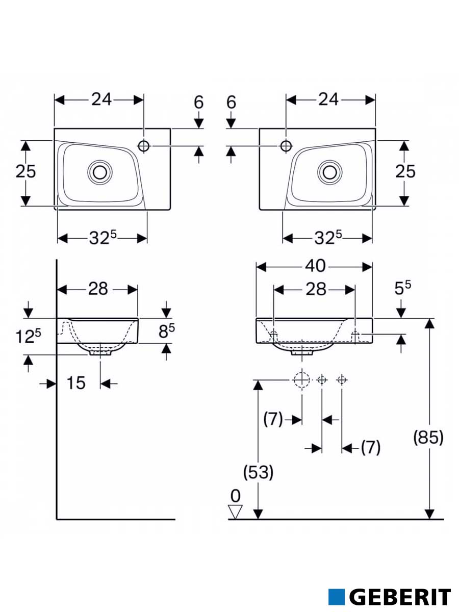 Širina 38cm, Visina 52.5cm, Dubina 26.5cm - Dimenzija umivaonika: