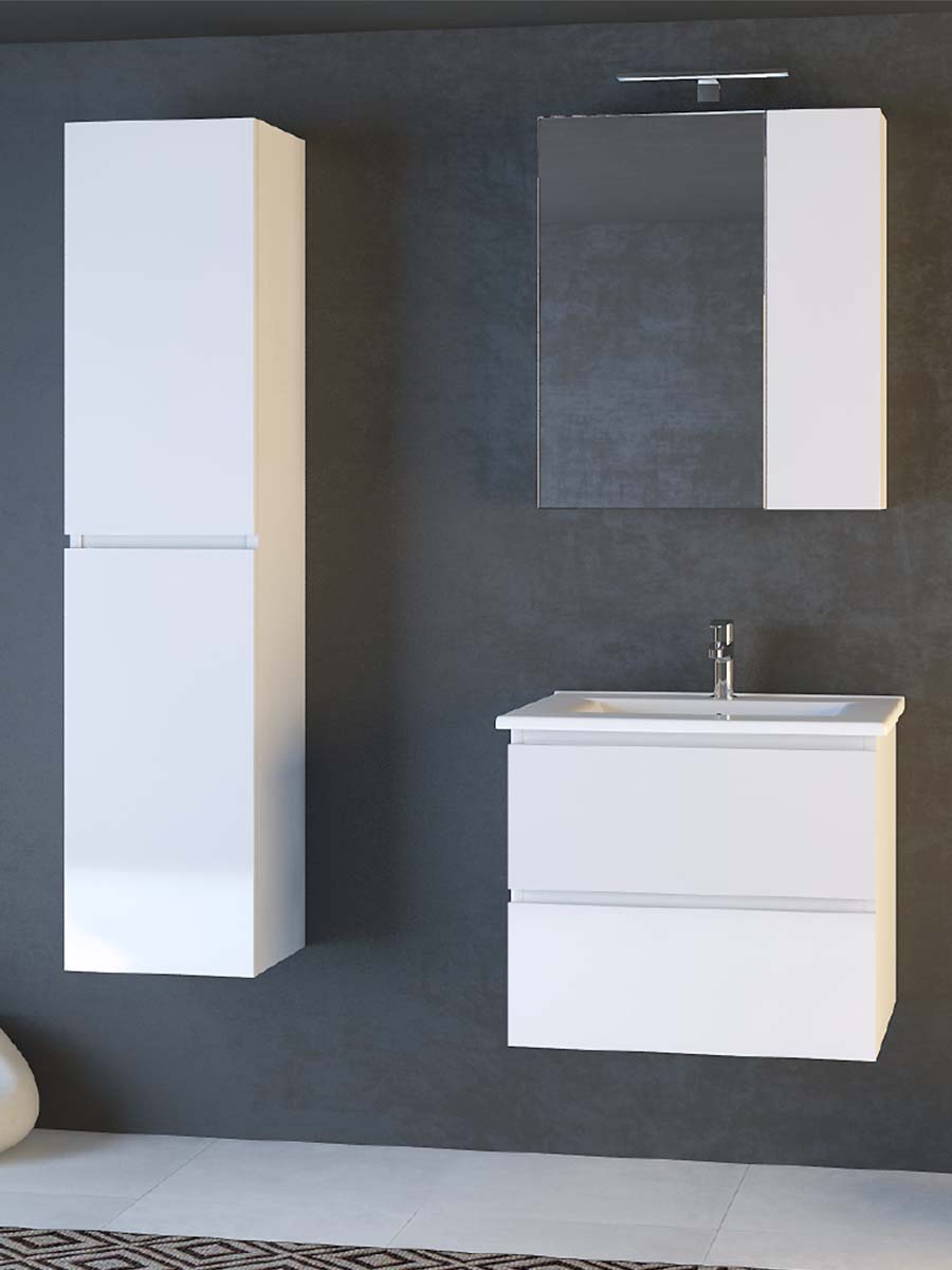 Lavabo sa ormarićem Euridika-FR 60cm Piramida izrađen najmodernijom tehnologijom u sferi izrade kupatilskog nameštaja predstavlja idealan spoj cene i kvaliteta. Front ormarića od kvalitetnog pločastog MDF materijala – medijapana, bočni deo od univera – oplemenjene iverice u beloj boji. Zidni/konzolni ormarić sa ugrađenim mehanizamom usporenog zatvaranja fioka – soft close mehanizam. Dolazi u kompletu sa keramičkim umivaonikom sa otvorom za slavinu. Pogledajte kompletnu ponudu slavina za lavabo: SLAVINE ZA LAVABO
