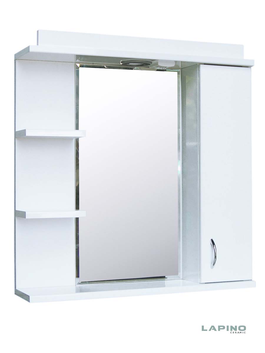 Ogledalo sa ormarićem 60×65 LAPINO domaćeg proizvođača je idealan sklad funkcionalnosti i dizajna po pristupačnoj ceni za uređenje vašeg kupatilskog prostora. Ormarić izrađen najmodernijom tehnologijom u beloj boji. Front ormarića izrađen od pločastog MDF – medijapana, bočni deo oplemenjena iverica. Na samom ormariću je ugrađeno svetlo, prekidač i utičnica.