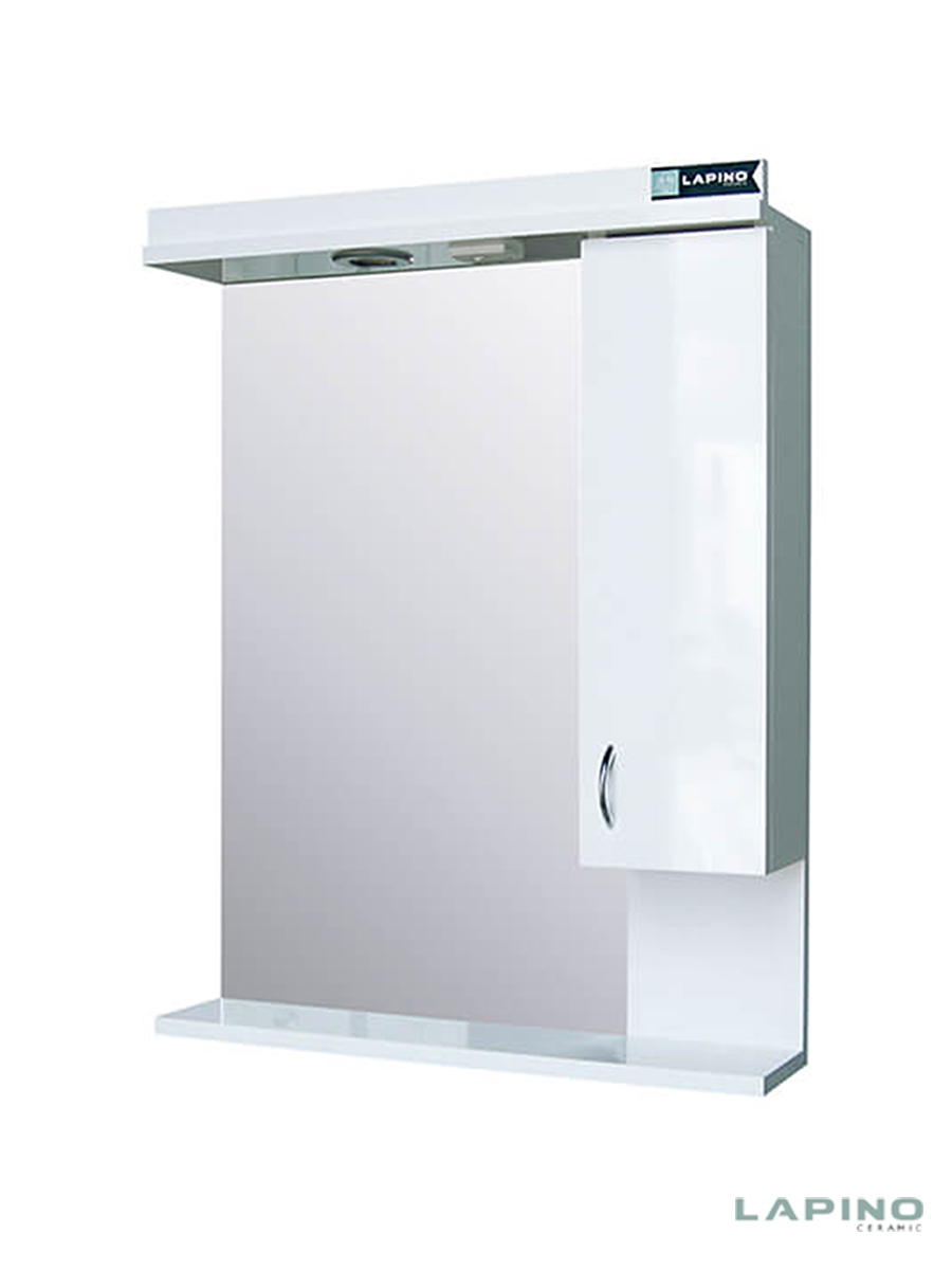 Ogledalo sa ormarićem 65×85 Lapino Uni domaćeg proizvođača. Idealan sklad funkcionalnosti i dizajna po pristupačnoj ceni za uređenje vašeg kupatilskog prostora. Ormarić izrađen najmodernijom tehnologijom u beloj boji. Front ormarića izrađen od pločastog MDF – medijapana, bočni deo oplemenjena iverica. Lakiran poliuretanskim lakom koji pruža postojanost boje, lako održavanje i duži vek trajanja. Na samom ormariću je ugrađeno svetlo, prekidač i utičnica.
