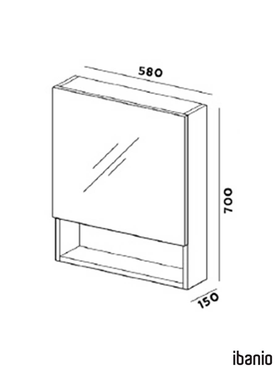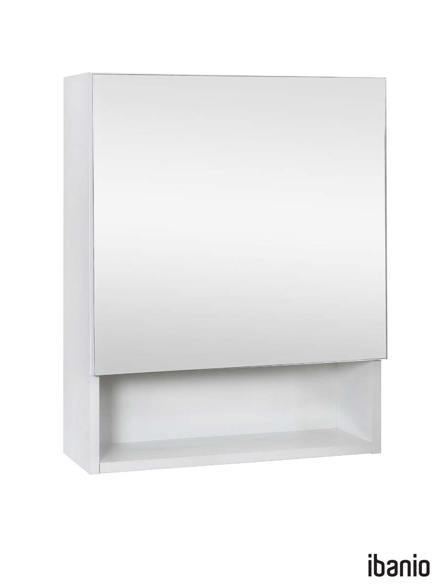 Ogledalo sa ormarićem Ibanio Nova 60cm u beloj boji izrađeno od pločastog medijapana. Šarke na vratima su opremljene usporivačima za tiho i meko zatvaranje. Prednost izrade od MDF-a je visoka parootpornost, lakše održavanje i duži vek trajanja. Površina fronta ormarića je u ogledalu.
