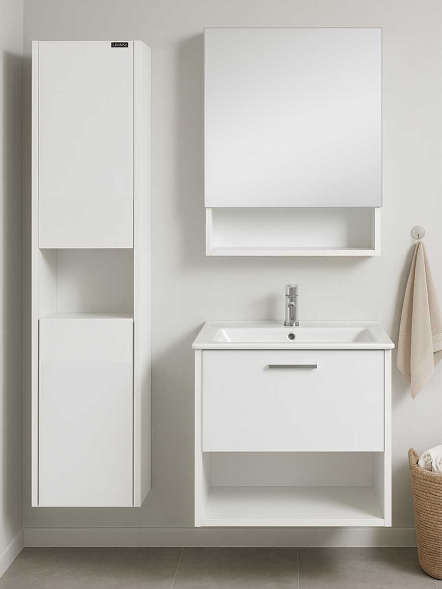 Kupatilski nameštaj Nova serija odlikuje se svedenim linijama i minimalističkim dizajnom u elegantnoj beloj boji. Zahvaljujući univerzalnom stilu, lako se uklapa u različite tipove kupatilskih enterijera – od modernih do klasičnih. Pored estetske vrednosti, pruža praktičnost kroz dovoljno prostora za odlaganje svih sitnica i održavanje urednog i organizovanog prostora. Idealan je izbor za one koji žele spoj funkcionalnosti i sofisticiranog izgleda u kupatilu.