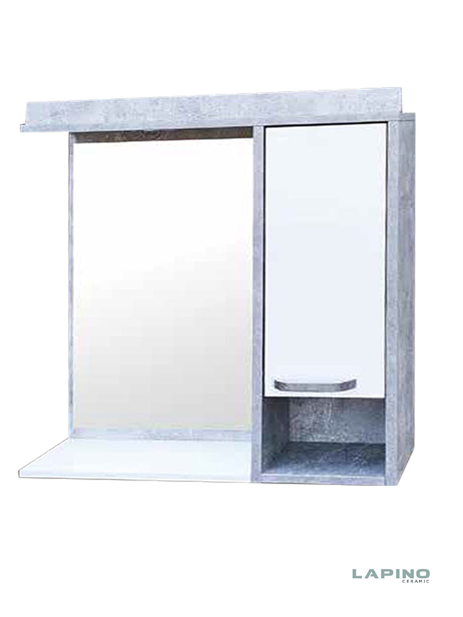 Ormarić sa ogledalom Beton 65×75 Lapino-Mirela domaćeg proizvođača. Idealan sklad funkcionalnosti i dizajna po pristupačnoj ceni za uređenje vašeg kupatilskog prostora. Ormarić izrađen najmodernijom tehnologijom u sferi izrade kupatilskog nameštaja. Front ormarića izrađen od pločastog MDF – medijapana, bočni deo oplemenjena iverica.