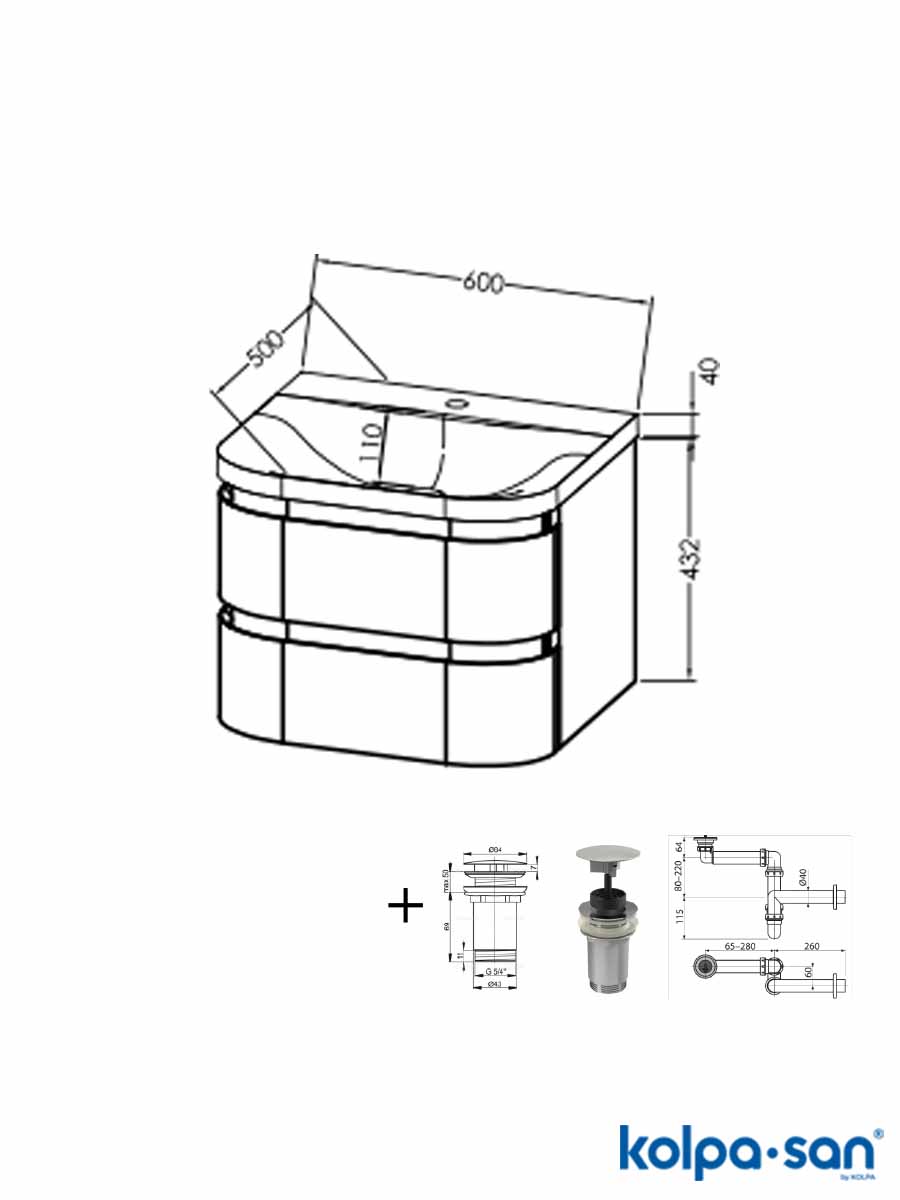 Lavabo sa ormarićem 546180 Kolpa San Vittoria bela 60cm