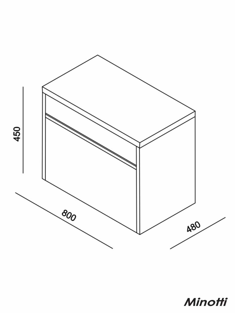 Ormarić za nadgradni lavabo 80cm Notte-Minotti modernog dizajna izrađen od kvalitetnog pločastog MDFa – medijapana i univera – oplemenjene iverice. Fioka ima dodatak mehanizma usporenog zatvaranja – soft close mehanizam. Svedenih linija u boji drveta i antracit dezenu, ovaj model predstavlja idealno rešenje za funkcionalnu organizaciju vašeg kupatilskog prostora. Pruža dovoljno prostora za odlaganje svih stvari koje su vam potrebne u kupatilu i pritom ne zauzima mnogo mesta. Obzirom da dolazi bez umivaonika možete pogledati kompletnu ponudu nadgradnih umivaonika i kompletirajte ovaj kupatilski element: NADGRADNI UMIVAONICI.