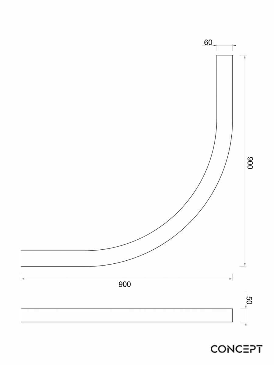 - Polukružnog oblika 900mm.