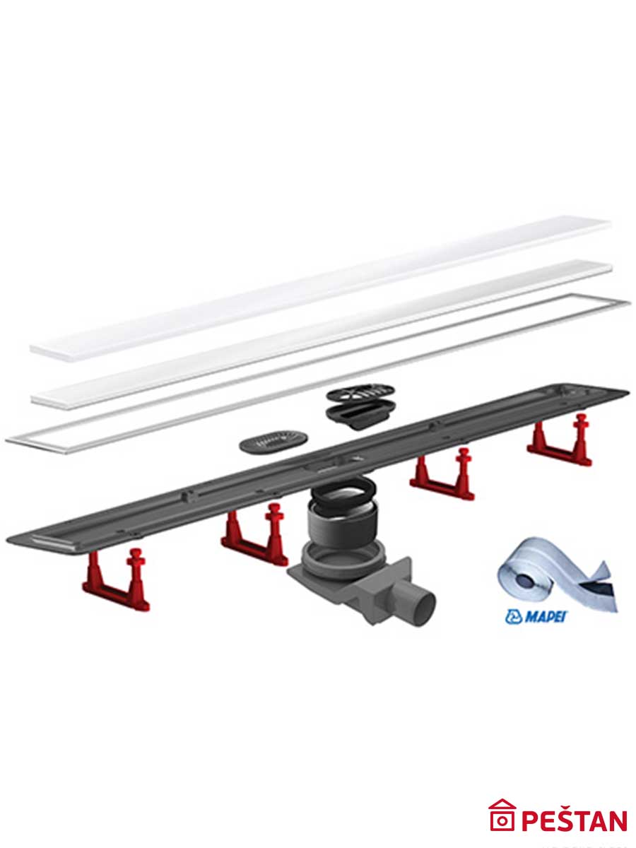 Napomena: Svi Premium Line modeli se dostavljaju sa kompletnim setom šrafova, parom nogica za podešavanje visine i samolepljivom butilnom trakom za hidroizolaciju sa otpornošću na alkale i specijalnom tkaninom za vodonepropusne sisteme. Slivnici u dužinama 300, 450, 550 i 650 dolaze u pakovanju sa dva seta nožica za podešavanje visine. Slivnici u dužinama 750, 850 i 950 dolaze u pakovanju sa četiri seta nožica za podešavanje visine.