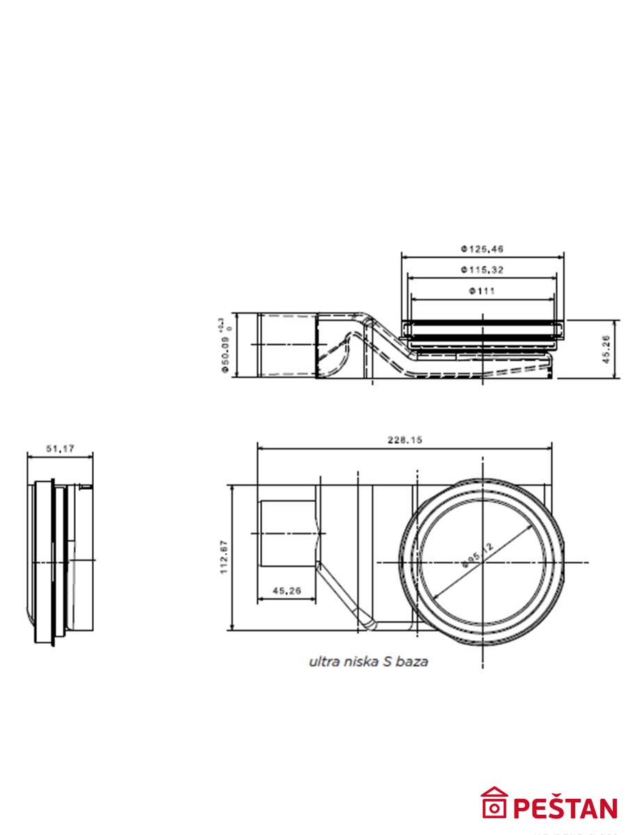 • Materijal tela slivnika: ABS(nosač rešetke)/PP (reducir, baza)