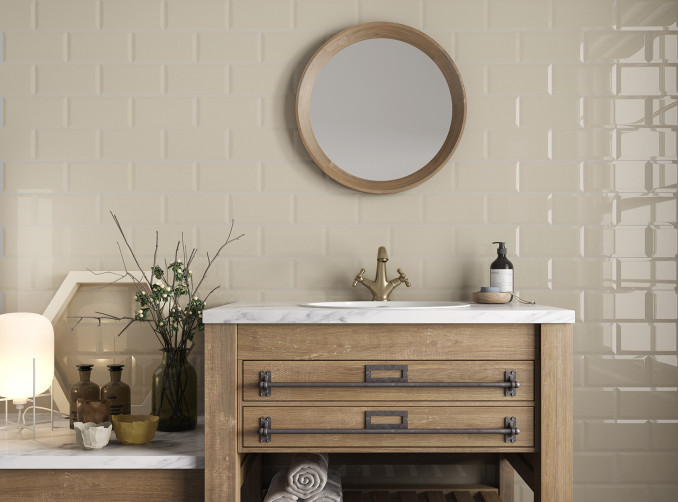Pločica Monocolor Crema Biselado Brillo 10x20cm