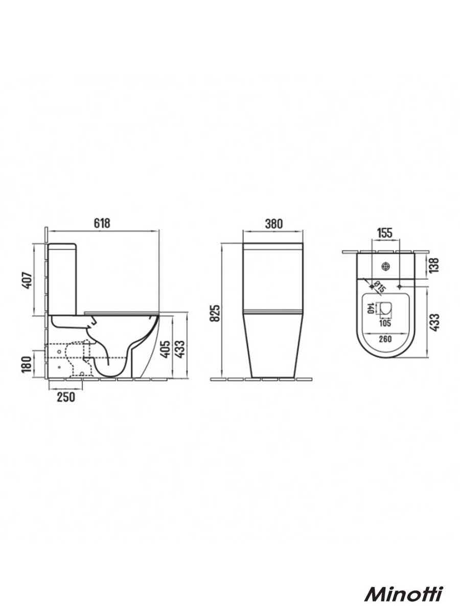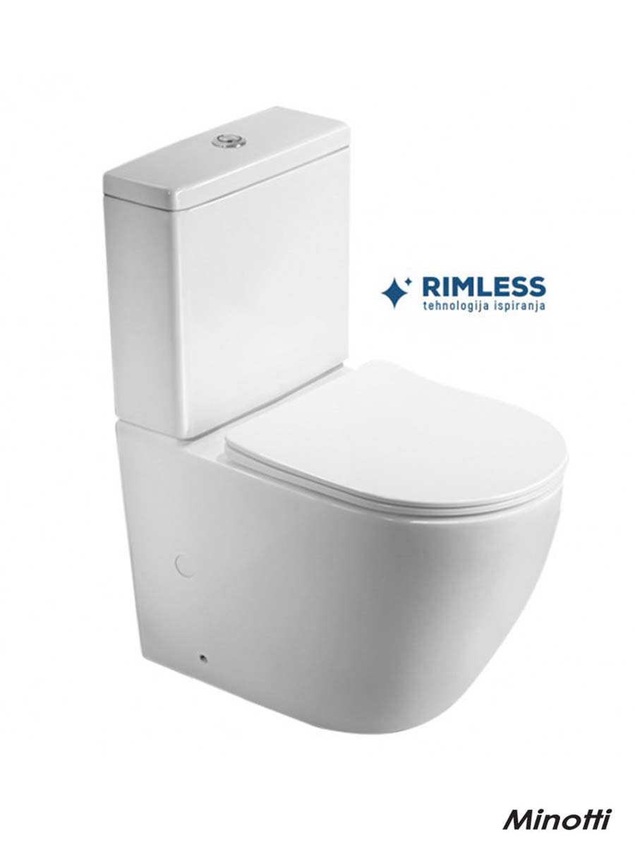 Monoblok rimless sa daskom Perla Minotti MBL200 sa univerzalnim odvodom – baltik i simplon. Izrađen od sanitarne keramike sa rimless tehnologijom ispiranja – bez unutrašnjeg oboda što sprečava formiranje sloja kamenca unutar same šolje i omogućava pristup i čišćenje svih delova. Dolazi u kompletu sa wc daskom od duroplasta sa sporospuštajućim mehanizmom – softclose zatvaranjem.