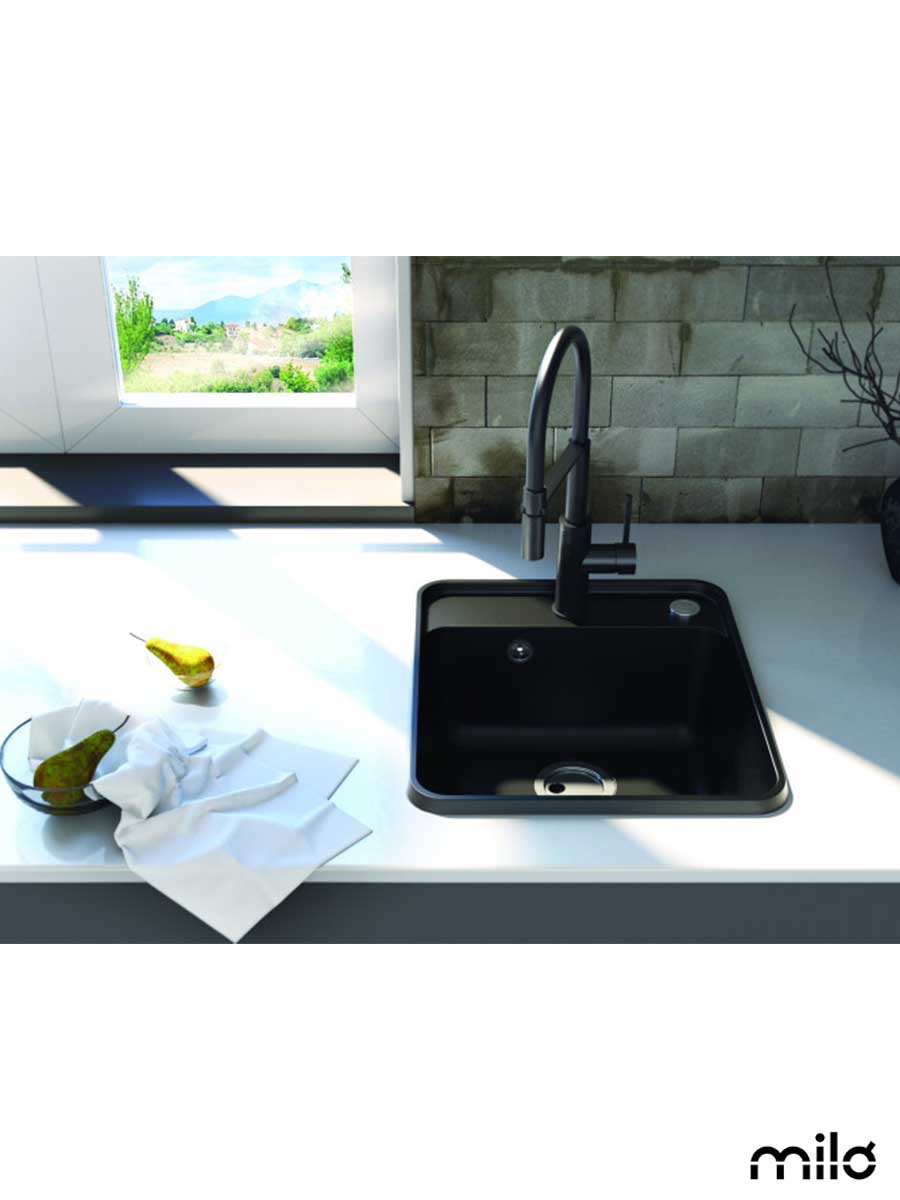 Granitna sudopera PIU 46x52cm Lava stone Milo dizajnirana sa pažnjom čini spoj funkcionalnosti i minimalističkog dizajna kako bi se uklopila u svaki kuhinjski prostor. Dolazi u kompletu sa moderno dizajniranim hrom sifonom. Na gornjoj ivici zida sudopere je dugme za automatski push mehanizam sifona. Napravljena od materijala visokog kvaliteta, sve sudopere prolaze testiranja u sertifikovanim laboratorijama, u kojim se utvrđuju njihova fizička, hemijska i mehanička svojstva. Svi testovi potvrđuju sledeće: