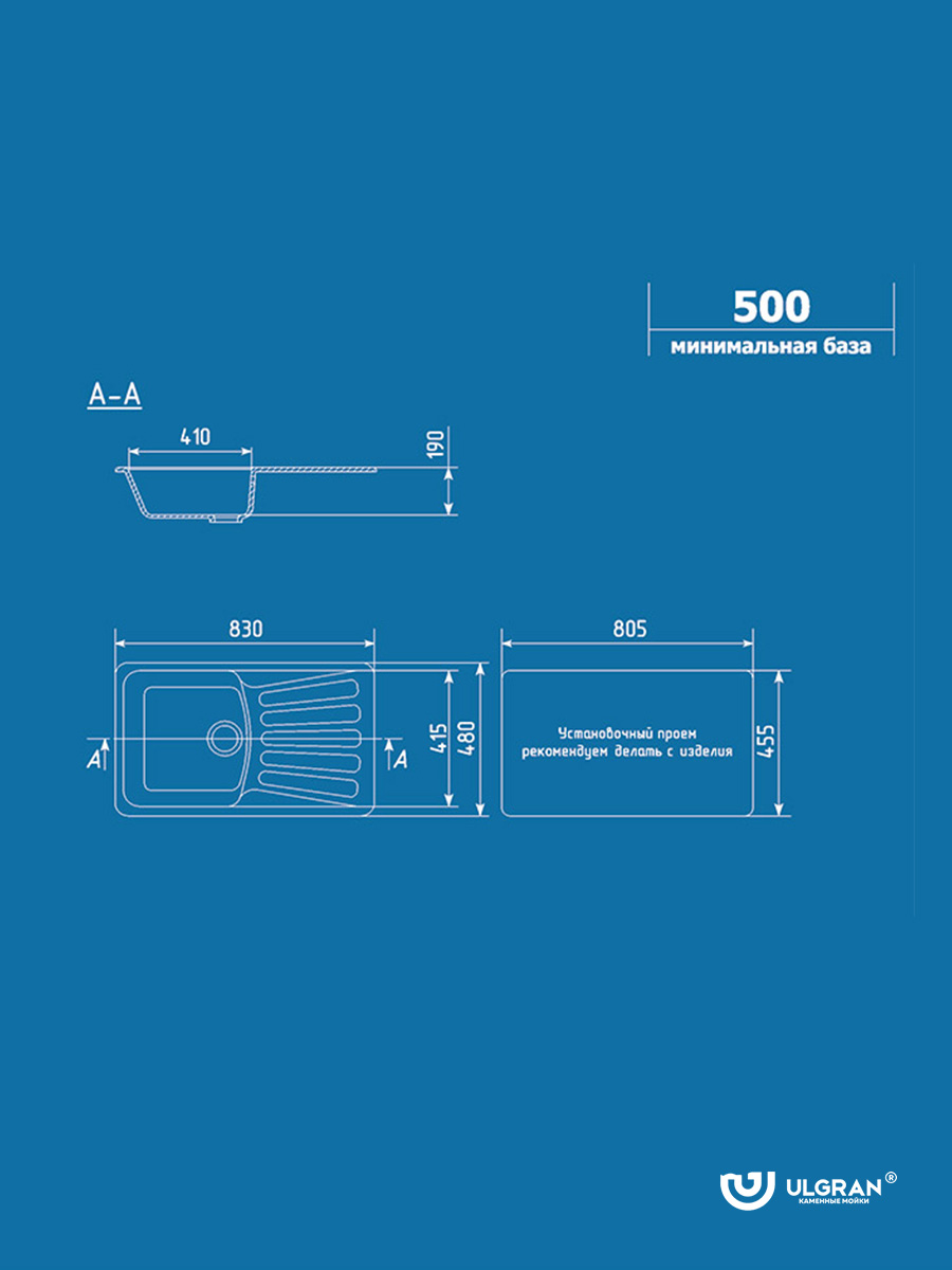 Granitna sudopera U-203 Ulgran 83x48cm