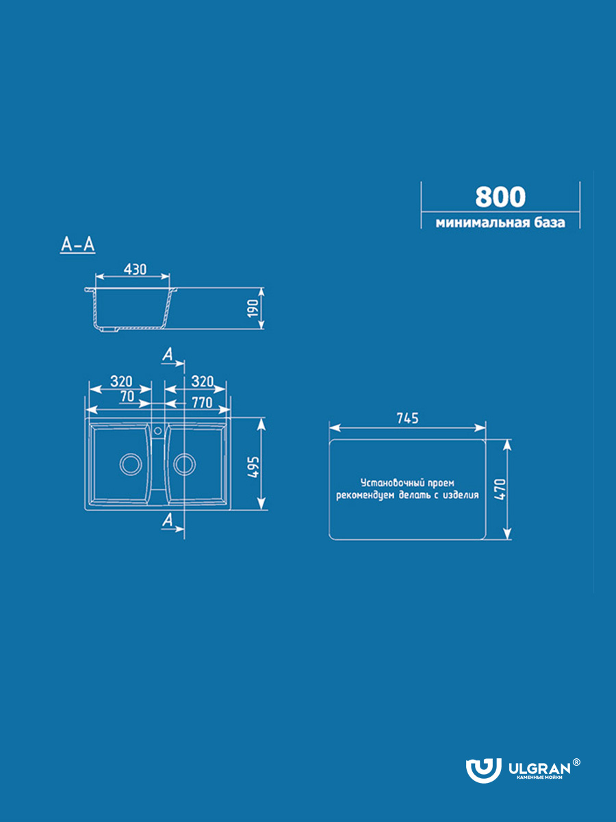 Granitna sudopera U-402 Ulgran 77×49,5cm